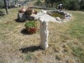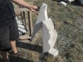 STEFANO FACCINI di Pescara ma originario di Bergamo. Ha scoperto, qui nel Centro sud, una realtà che gli ha permesso attraverso l’arte, i sapori e i paesaggi di piantare le sue radici. Mostre collettive e diversi simposi lo accompagnano nella sua escalation artistica. La sua opera “Vomito di Natura” è la fusione non solo di due materie prime (legno e pietra) ma anche di due artisti, Stefano, appunto e Marco Bevilacqua (Pe) artigiano del legno ( è la prima volta che partecipa ad un simposio e quando gli ho chiesto che cosa rappresenta la sua opera la risposta è stata tutta di un fiato:’Entità terrestre che verbalizza la natura’). “Vomito della Natura” …la natura che rigenera sé stessa!