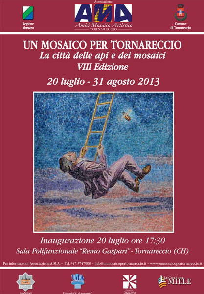 Presso la sala “Remo Gaspari” in via don Bosco a Tornareccio (Ch) sabato 20 luglio alle 17.30 ci sarà la presentazione dei nuovi bozzetti in concorso, dei nuovi mosaici realizzati, e l’inaugurazione della mostra personale di Stefano Di Stasio, vincitore edizione 2012.