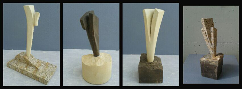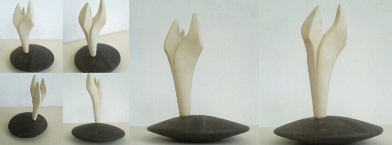 Ma la sua genialità si esprime anche in forme di astrattismo dove un concetto, un’emozione li traduce in un unico blocco di pietra, ‘Corteggiamento’. Ma è nei ‘Germogli’ o ‘Virgulti’ che Colangelo trasferisce la vita vegetale ancora inesplosa.