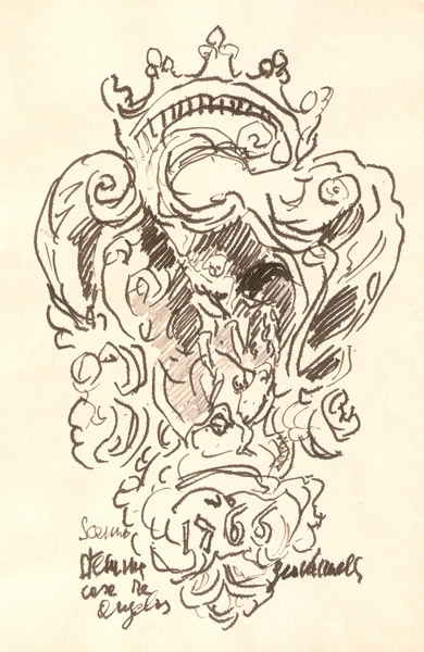 Gli svolazzi del portale mi ricordano, per impianto strutturale e decorativo, il portale della casa paterna di Ernesto Giammarco, glottologo della vicina Introdacqua, da me disegnato nel 1985 (Cfr, Aa. Vv, Introdacqua- storia, arte, folklore,musica, Roma,Edizioni dell'Ateneo,1985 ). In pratica, questa tipologia di portale risulta abbondantemente diffusa nella Valle Peligna.