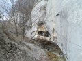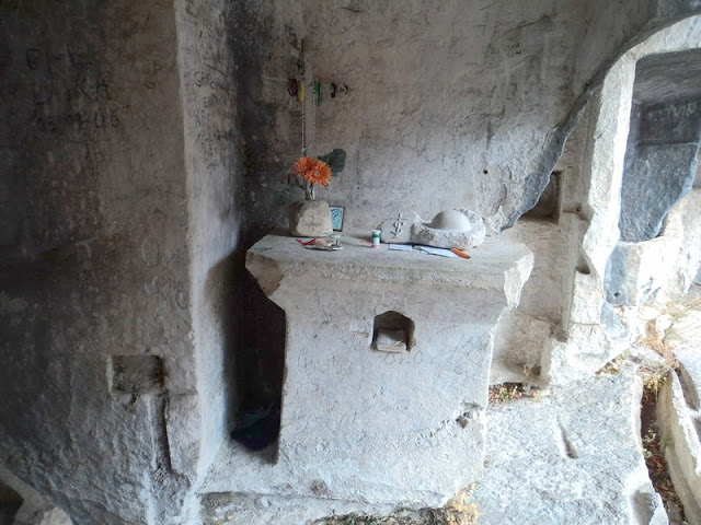 Ritornati sulla carrareccia, arrivati alla catena, c’è un’altra palina che indica il sentiero per l’eremo, che si percorre senza problemi, anche se c’è un passaggio aereo attorno ad uno spigolo esposto sulla valle dell’Orfento. L’Eremo/Grotta di San Giovanni è ricavato su una rientranza della parete a circa 10 metri da terra. Il silenzio, la misticità del luogo, stimolano la contemplazione e mi fanno riflettere su Pietro da Morrone, papa Celestino V, che rinunciò al papato dopo 5 mesi di pontificato, il 13 dicembre del 1294.