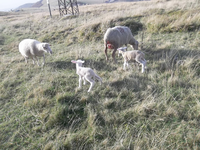Quasi alla fine del sentiero, una visione che mi rallegra, perché erano anni che non vedevo un gregge di pecore. Tante pecore e capre controllate dai cani pastori abruzzesi. Non vedo il pastore che all’improvviso appare con... "due cose" che non distinguo, penzoloni dalle mani. Lo aspetto, gli chiedo il nome, Nikolai, è della Macedonia, ha trent’anni e poggia a terra due agnellini nati da un’ora. Si reggono a mala pena in piedi, arriva subito la madre ancora con la placenta attaccata e cerca di proteggerli. Il mondo animale è fantastico, impensabile fa riflettere. Chiedo a Nikolai come si svolge la sua giornata… “Mi alzo presto ed alle cinque inizio la mungitura di un centinaio di capre. Il gregge è formato da mille pecore e capre e dieci cani. Il latte munto viene prelevato dal proprietario che lo porta a valle. Lo stazzo sta dietro l’Albergo Mammarosa, a Fonte Tettone. Al tramonto torno e mi organizzo per la notte, dopo aver fatto da mangiare ai dieci cani. Fra alcuni giorni scendo al paese, Serramonacesca PE”.