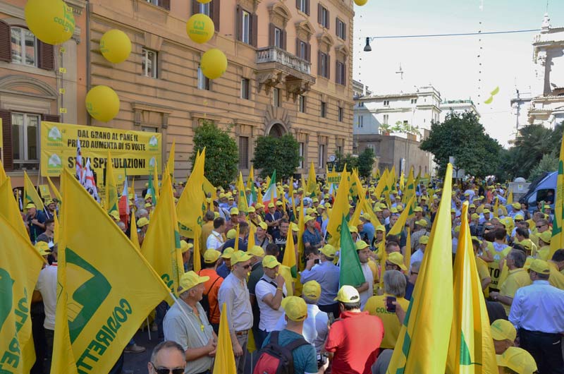 Il crollo del prezzo del grano rispetto allo scorso anno è costato nel 2016 agli agricoltori abruzzesi circa 16 milioni di euro, mettendo a rischio la sopravvivenza delle migliaia di aziende produttrici che nella nostra regione stanno lavorando con compensi al di sotto dei costi di produzione. A denunciarlo è la Coldiretti Abruzzo in occasione del blitz davanti al Ministero delle Politiche agricole, a Roma, di decine di produttori, giunti da tutte le province abruzzesi assieme a migliaia di “colleghi” da tutta Italia soprattutto giovani cerealicoltori in occasione del tavolo nazionale della filiera dai campi all’industria fino alla distribuzione commerciale. In Via XX Settembre sono stati appesi striscioni “No grano no pasta”, “Stop alle speculazioni”, “Chi attacca il Made in Italy attacca l’Italia” e “Il giusto pane quotidiano” ma c’è anche una curiosa bilancia con 15 chili di grano ed uno di pane; così tanto grano infatti deve essere venduto dagli agricoltori per comprarsi un chilo di pane. Sono stati anche preparati sacchetti di grano da 5 chili che equivalgono al valore di un euro con i quali gli agricoltori hanno annunciato di voler fare la spesa – magari per un semplice caffè - nei locali circostanti.
