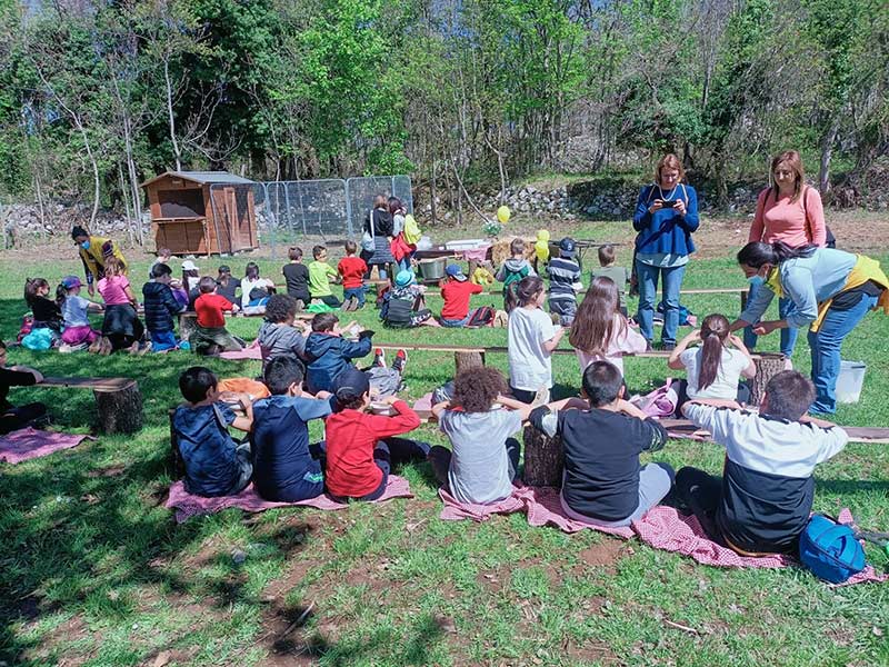 Ieri, a conclusione delle lezioni a distanza, le quarte classi dell’istituto comprensivo di San Valentino in Abruzzo Citeriore e Scafa (plessi di San Valentino e Turrivalignani) hanno visitato l’azienda agricola “Da Come una volta” di Marina e Angiolina De Angelis (quest’ultima responsabile di Coldiretti Donne Impresa Pescara) per capire da dove viene il cibo e perché acquistare prodotti del territorio. Nel corso della visita è stata effettuata una prova di caseificazione, alla quale si è aggiunta una mini lezione sugli “attrezzi del casaro” e sulla filatura della lana vergine. I bambini si sono poi trasformati in piccoli casari, hanno realizzato una piccola giuncata e, dopo una passeggiata in montagna tra le pecorelle, hanno fatto merenda con panino al formaggio e ferratelle ripiene di ricotta fresca.