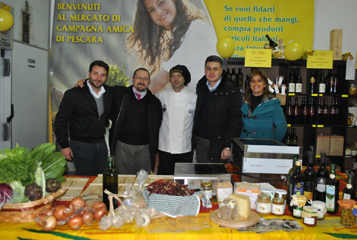 Gran successo per il cooking show dello chef Silvano Pinti nel mercato di Campagna Amica di Pescara tenutosi in occasione della festa della donna. Il cuoco di Francavilla in collaborazione con Campagna Amica e Coldiretti Donne Impresa Abruzzo ha animato la visita delle clienti di via Paolucci con una performance culinaria apprezzata e applaudita. Utilizzando i prodotti freschi dei produttori di Coldiretti, il cuoco ha preparato – ed offerto – i piatti semplici della cucina tradizionale, rivisitandoli estemporaneamente. Così, non solo, pane con cipollina fresca e olio dop, ma anche insalata di indivia, mele, miele e formaggio misto grattugiato, innaffiata da un trebbiano doc; insalata di farro con verdure fresche, sfoglie di formaggi a pasta filata abruzzesi, pasta alla “trappitara” con aglio rosso di sulmona, peperone dolce secco (bastardone) e olive nere di varietà dritta in salamoia.