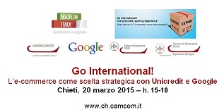 Go International! di Unicredit, con un video seminar sulle opportunità legate all’ecommerce, sarà il cuore dell’evento di presentazione delle 72 imprese del settore dell’agroalimentare e dell’artigianato artistico della provincia di Chieti che hanno portato a termine il progetto Eccellenze in Digitale, riducendo il proprio gap digitale ed entrando per la prima volta sul web o migliorando il proprio posizionamento.