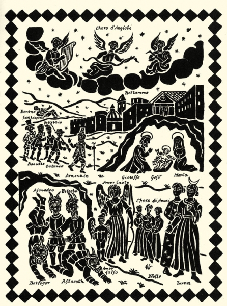 Quando ero ancora ragazzino, nel più importante teatro della città tutto il mese di dicembre teneva cartellone la Cantata dei pastori. Delle rappresentazioni di quell’epoca, a parte un certo movimento scenico e qualche passaggio tipico dei personaggi più caratteristici, per il resto ricordo ben poco. Ma solo nel Natale del 1972 ne colsi il senso, quando, perduto ormai il contatto col testo dell’opera (e rara era divenuta per noi l’occasione di poter assistere ad una rappresentazione della Cantata dei pastori), mi capitò di vederla con Patrizia, a Torre Annunziata realizzata dalla filodrammatica degli ex allievi dei Salesiani. Poi, di nuovo, più recentemente mi è stata offerta l’occasione – forse si era nel 2007 o giù di lì – di rivederla a Castellammare presso la Parrocchia di s. Antonio; e questa volta, adattata dalla locale compagnia di attori secondo una prassi consuetudinaria, essa comprendeva anche il preludio del sogno di Benino con lo scontro tra il diavolo Uriel e l’arcangelo Gabriel.