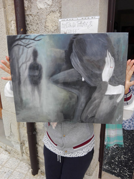Giovane intraprendente, ha tenuto la sua prima personale a luglio a Vasto nella Casa Rossetti. Ed ora espone a Schiavi di Abruzzo, dove si potrà osservare Seneca , il dipinto che ha utilizzato per la mappa concettuale per il diploma dal titolo: ‘A me Dio perdonerà di avermi creato con due anime avverse’ (Apologia di Seneca); la tela recisa, frutto dell’espressione di una poesia di Montale ‘Non recidere forbici quel volto; un dipinto di Mika, riproduzione della foto del cantante; un chiaro/scuro dove l’occhio che si manifesta da una zona ombra è la sintesi di una rabbia che sta scomparendo..