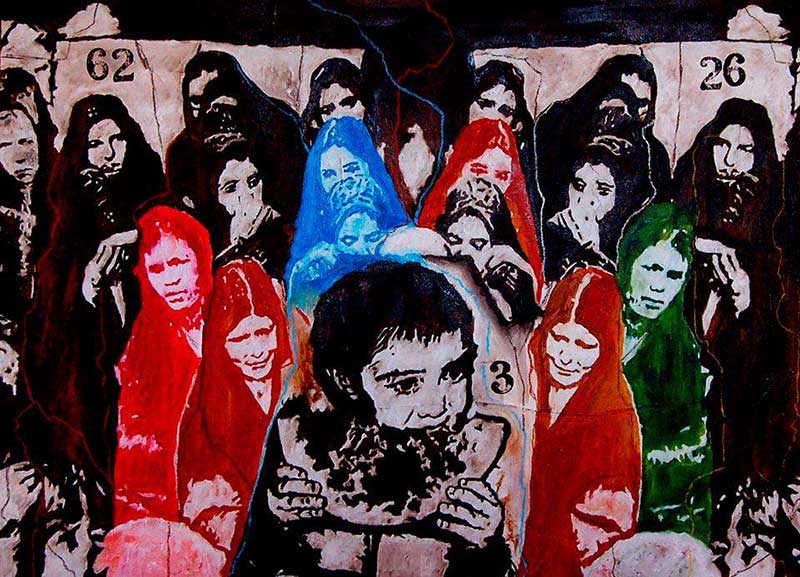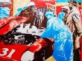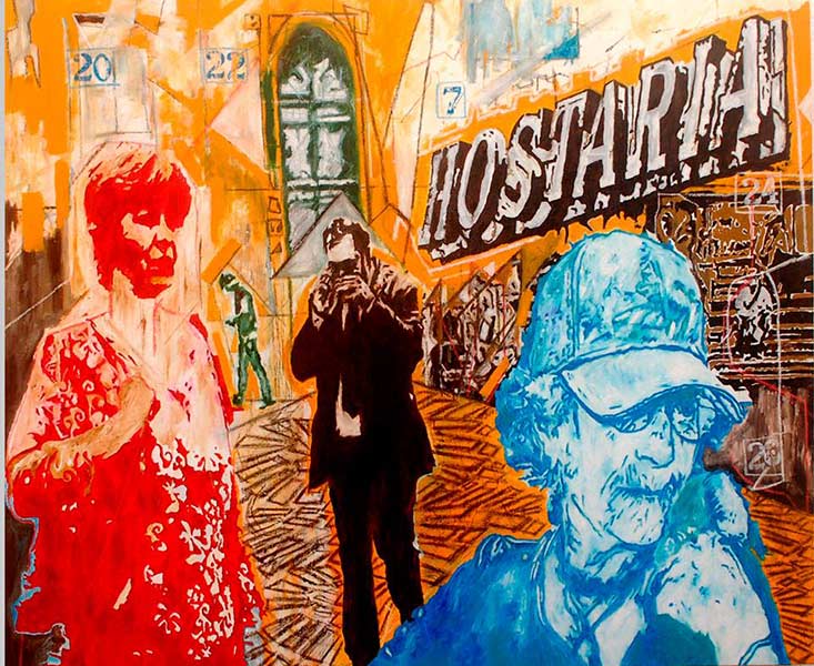 Quest’anno, ad Agosto, la sua mostra a Palazzo San Francesco di Agnone è stata come incontrarlo per la prima volta attraverso i suoi lavori. Forza, espressione, mistico queste le sensazioni di primo acchito. Un’introduzione sui generis quella dell’inaugurazione , ad opera di Italo Marinelli medico e uomo di cultura, che ha realizzato un percorso verbale e visivo con riferimenti, paragoni, simbolismi e pillole di umorismo su artisti e sportivi ma con un unico filo conduttore: Hen-ZO. Le opere di Hen-ZO…fotografie su tela, dove i pixel si trasformano in liquido, olio-acrilico-china. Colori carichi ma sfocati, figure e volti non delineati ma comprensibili. Una vita, la sua vita che fluidamente esce dal pennello realizzando l’immagine che l’occhio della sua anima vede.