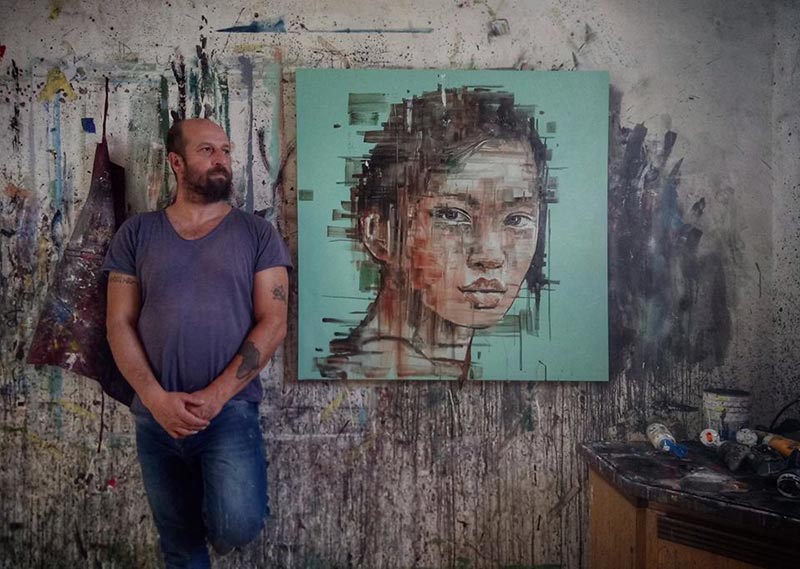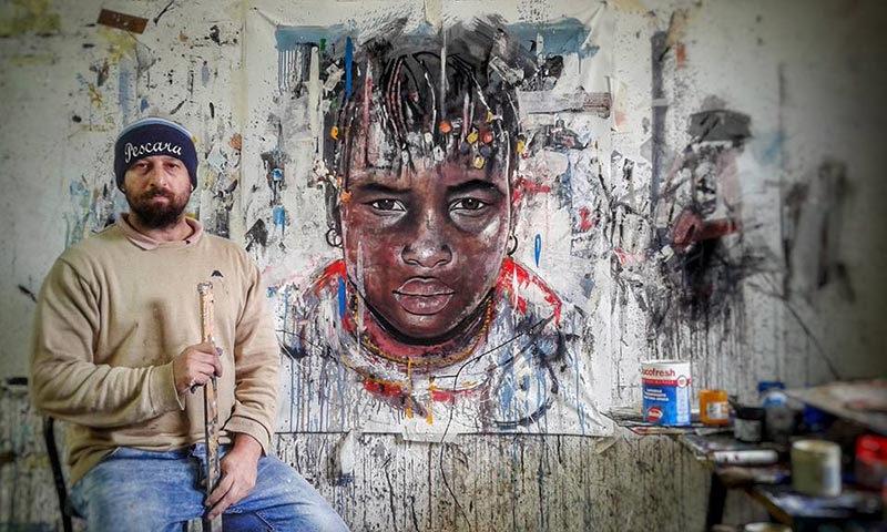 DOMENICO DI GENNI nasce a Termoli (Cb) nel 1971. Inizia i suoi studi d’ arte all’Istituto Statale d’Arte di Vasto (Ch) dove consegue il diploma in maestro d’arte. Si iscrive all’Accademia di Belle Arti di Firenze dove consegue il diploma di Pittura nel 1995, con una tesi sul gruppo “Forma 1” e sull’arte astratta italiana nel secondo dopoguerra. Inizia ad esporre dalla metà degli anni ’90. Nel 1995 la bipersonale (Domenico Di Genni/ Massimiliano Alioto) dal titolo “Il Gatto e la Volpe” alla Galleria Perseus di Firenze. Sempre nel 1995 la collettiva di scultura “Rinascimento e Scultura” nella Casa Natale di Michelangelo Buonarroti a Caprese Michelangelo (Ar) e la personale “Futura 1” al Caffe storico letterario Le Giubbe Rosse Nel 1996 si trasferisce a Milano e si iscrive all’Accademia di Belle Arti di Brera dove segue le lezioni di scultura di Giancarlo Marchese. Di quell’anno la mostra collettiva di pittura itinerante “Arte Romanica ieri ed oggi” con tappa al Palazzo Pretorio di Volterra (Pi) e a Le Liege, in Francia. Nel 1998 partecipa alla Mostra-Concorso “Giovani scultori di Brera” a Tortona (Al) e vince il primo premio. Nel 1999 vince una borsa di studio dell’Akademie der kunst Weissensee a Berlino dove si trasferisce per un anno lavorando nel famoso studio di Montbijou park seguendo lezioni di maestri dell’arte quali Sigmar Polke e di Gerard Ritcher all’accademia di Dusserdolf. Qui, nel 2000, espone nella collettiva “Zeit und Kunst” all’Accademie der kunst Weissensee, poi tiene una personale all’Orange Cafè. Partecipa alla Mostra Mercato “Etruriarte” a Venturina (Li), ad Arte Padova e nel 2006 ad Expò Arte Bari. Nel 2003 espone per la prima volta le sue opere oltreoceano a Miami (Florida, (USA) con la mostra “Landescapes” nel prestigioso Brikell Place 2001. Del 2007 la mostra personale “Inside” nella Chiesa di San Giuseppe al Duomo di Catania Nel 2008 partecipa a “OPEN 11” mostra internazionale di sculture ed installazioni in contemporanea con la mostra del cinema di Venezia, Venezia Lido e a “Il vuoto e le forme” mostra internazionale di sculture ed installazioni, Chiavenna (So) Nel 2010 la personale alla Galleria San Lorenzo di Milano, “Progetto Kabila”, a cura di Alessandra Redaelli. Nello stesso anno la mostra collettiva “La trilogia del colore: Rosso”, curata da Roberto Milani alla Galleria San Lorenzo di Milano. Del 2011 la collettiva “This is a journey”, curata da Roberto Milani per Casa d’Arte San Lorenzo allo Studio Rödl & Partner di Milano. Nel 2012 la collettiva “Il Vuoto e le Forme – Cantico”, a cura di Anna Caterina Bellati, Chiavenna (So) e le personali “Portraits”, al Peponi Resort a Lamu Island e “Ishara” al Muthaiga Country Club a Nairobi, entrambe in Kenya. Nel 2013 partecipa alla 64^ edizione del Premio Michetti “La bellezza necessaria” al MuMi – Museo Michetti di Francavilla al Mare (Ch) Nel 2013 dopo numerosi soggiorni in est Africa,si trasferisce a Watamu in Kenya, espone in mostre personali e collettive,”Maridadi” presso Watamu Life, a cura di Grazia De Palma,”Afrique”,ComeBack Club,Watamu.”Ocean View”al Kobe Suite Resort. ”POA Paintings of Africa” al Billionaire Resort di Malindi. In questi anni realizza tre grandi collezioni private in Kenya presso il Kola beach resort di Mambrui,il Kobe suites a Watamu ed al boutique hotel The Villa a Diani beach. Del 2015 la mostra personale “EXOTICA” al Kobe suites a Watamu, Nel 2016 partecipa alla collettiva “La Regola Del Volto”, Scoletta della Bragora, Venezia, a cura di Anna Caterina Bellati. Presenta il progetto per PARMA 360 “Luoghi Armonici” c/ Concept Store Stefano Saccani, Parma a cura di Chiara Canali. Nel 2107 una grande personale “ETERE” a cura di Roberto Milani c/o Rome free Lounge, Roma Nel 2018 “ Aria Aperta” Mostra personale c/o Centro Vacanze Poker, Casalbordino, (Ch) e due performance Live” Ultramare” e “ Mar-te” presso la Casa D’ Arte San Lorenzo, Riccione “Wondertime” c/o Ex convento di Santa Chiara, Catania, a cura di Daniela Arionte. Attualmente vive e lavora tra Italia e Kenya.