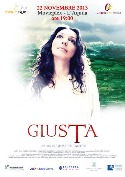 GIUSTA di Giuseppe Tandoi, prodotto da Esprit Film, sostenuto dal Mibac, da UBI Banca Carime, da Teledata Engineering e dal Concentus Serafino Aquilano, sarà proiettato in anteprima il 22 novembre 2013 ospite dell’Aquila Film Festival, presso la Multisala Movieplex dell’Aquila.