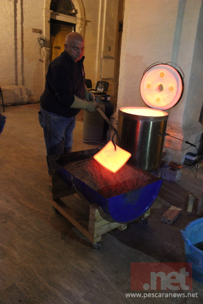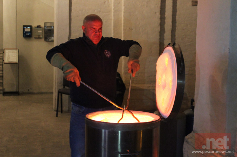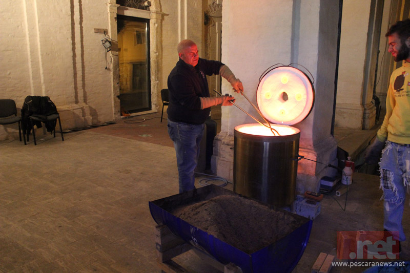Difficile descrivere con le parole questi passaggi e i risultati ottenuti. Certo è che la maestria e l’abilità di “Peppino” Liberati è stata tale che ha incantato il pubblico di curiosi visitatori e artisti presenti, ammaliati dallo sfavillio dei pezzi incandescenti estratti dal forno e dalle fumate e vapori che si creavano per gli sbalzi termici.