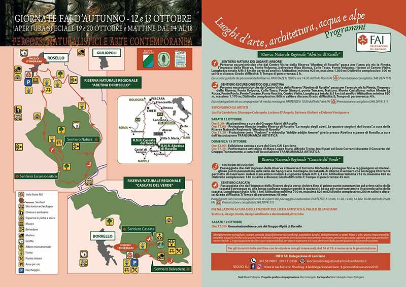 La delegazione FAI di Lanciano ha organizzato un’escursione a cura delle guide della Riserva e degli accompagnatoria di media Montagna, che dal Centro Visite della Riserva “Abetina di Rosello”, passa per l’area picnic la Pineta, l’ingresso della Riserva, Fonte Volpona, belvedere Ripa Bianca, Colle Tasso, Fonte Volpona, ritorno al Centro Visite.