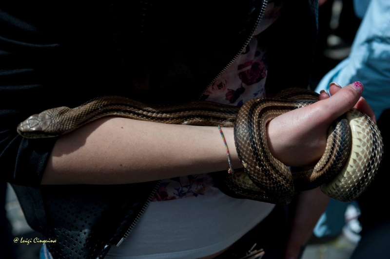 Come tradizione vuole, anche quest’anno si è ripetuto, a Cocullo, in provincia dell’Aquila, il rito maggese dei serpenti (dal latino Maius ,maggio) per la festa di San Domenico , al quale la tradizione cocullese attribuisce il potere di guarire dal morso dei serpenti e dei lupi, oltre che dal mal di denti. Una giornata per esorcizzare la paura del serpente? Chissà! Ma una cosa è certa , sia grandi che piccini non si sono lasciati perdere l’occasione di farsi avvolgere dalla silente corporatura di un rettile che, nonostante tutto, conserva il suo fascino di tentatore.