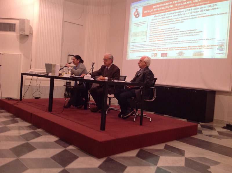 Questa volta è stata Genova, la Città della Lanterna, così fortemente legata alla storia della nostra emigrazione, ad ospitare il Seminario di presentazione del Dizionario Enciclopedico delle Migrazioni Italiane nel Mondo (DEMIM), pubblicato da SER ItaliAteneo con la collaborazione scientifica della Fondazione Migrantes. L’emigrazione italiana tra Ottocento e Novecento è stata al centro del Seminario, tenutosi il 5 novembre scorso all’Archivio di Stato di Genova. L’evento, promosso dal CISEI (Centro Internazionale Studi Emigrazione Italiana) partner scientifico del Dizionario, ha visto tra i relatori Tiziana Grassi, ideatrice e direttrice del progetto, motore ed anima dell’opera, e del direttore editoriale Enzo Caffarelli. Un folto pubblico ha seguito i lavori del seminario, nonostante l’ Allerta Uno sulla città, gravemente flagellata da violenti nubifragi. Una partecipazione motivata, attenta, a conferma che l’emigrazione, sebbene persista un’inconcepibile distrazione di Istituzioni e classe politica del Paese su un fenomeno così significativo per la nostra storia, è tema centrale e quanto mai attuale, tra nuove mobilità che dall’Italia tornano a varcare i confini alla ricerca di lavoro, e gli 80 milioni di oriundi italiani nel mondo. Dunque una riflessione a tutto campo, quella tenutasi a Genova, stimolata delle tematiche trattate nel monumentale Dizionario sull’epopea migratoria italiana, resa possibile dall’iniziativa del CISEI in collaborazione con l’Archivio di Stato di Genova, il MuMa (Museo del Mare e delle Migrazioni), l’Università di Genova, l’Autorità Portuale e la Fondazione Casa America. Preceduto dalla firma del Protocollo di collaborazione scientifica tra CISEI e Ministero dei Beni e delle Attività Culturali, sottoscritto dal presidente del CISEI Fabio Capocaccia, e dal Soprintendente Maurizio Galletti, il seminario ha preso il via con il saluto del direttore dell’Archivio di Stato di Genova, Francesca Imperiale, che presentando il convegno ha espresso vivo apprezzamento per la ricchezza di contenuti del Dizionario Enciclopedico, al quale l’Archivio di Stato ha dato un rilevante contributo con il proprio patrimonio storico-documentale, come banche-dati, liste passeggeri, registri d’imbarco e giornali nautici. Tasselli rilevanti che contribuiscono a ricostruire l’ampio mosaico conoscitivo sulla Grande Emigrazione.