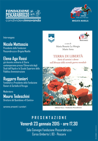 “Il fenomeno dell’assistenza spontanea era generalizzato in tutta la regione abruzzese. Sulla base di statistiche desumibili dai documenti conservati negli archivi nazionali di Washington, si può calcolare un coinvolgimento di decine di migliaia di persone nell’assistenza, sempre più rischiosa, agli ex prigionieri alleati fuggiti dai campi di concentramento dopo l’8 settembre”. Il grande cuore della straordinaria gente d’Abruzzo, evidenziato da Roger Absalom, lo storico inglese che è stato ufficiale durante la campagna d'Italia, una esperienza che gli ha permesso di conoscere direttamente il periodo della Resistenza, trova una ulteriore conferma nel libro fresco di stampa “Terra di Libertà”,a cura della giornalista Rai Maria Rosaria La Morgia e dello studioso Mario Setta. Un libro di storie nell’Abruzzo della seconda guerra mondiale, dedicato proprio a Roger Absalom. ”Storie di uomini e di donne” che la giornalista e lo studioso hanno raccolto con pazienza certosina e grande rigore storico. “La storia dei prigionieri angloamericani internati nei campi in Italia che dopo l’8 settembre riuscirono a fuggire e a nascondersi tra la popolazione, in attesa di passare le linee del fronte o del ritiro dei tedeschi, è una vicenda poco nota al grande pubblico”, scrive nell’introduzione Elena Aga Rossi. E sottolinea: “Fino a pochi anni fa non era stata nemmeno tradotta l’opera più esaustiva sull’argomento, il libro di Roger Absalom, pubblicato in inglese da Olschki nel 1991”. Ricorda che solo di recente la Rai ha trasmesso un documentario e che “vi è una ricca memorialistica di prigionieri che hanno narrato la loro esperienza, ma i volumi sono pubblicati solo in inglese o tradotti da case editrici locali”. Precisa che “la maggioranza dei prigionieri erano inglesi o dei paesi del Commonwealth ed erano stati catturati sul fronte africano, ma vi erano anche gli americani, tra questi molti piloti abbattuti dalla contraerea”. E nel libro sono tante le “testimonianze di ex prigionieri alleati usciti dai campi di concentramento e in fuga dai tedeschi, e di altri protagonisti, militari e antifascisti che si trovarono ad attraversare l’Abruzzo, per lo più nel tentativo di raggiungere le linee alleate”. E così viene fuori il ritratto limpido di gente umile e coraggiosa che rischia la vita per salvare altre vite. “Colpisce il fatto che non sono soltanto alcuni individui che accolgono il nemico del giorno prima come un ospite – scrive Elena Aga Rossi - ma è l’intera comunità che partecipa e si organizza per aiutarli, nonostante i proclami dei tedeschi che minacciavano la distruzione delle case dove avessero trovato rifugio i prigionieri e la fucilazione di tutti gli abitanti”.
