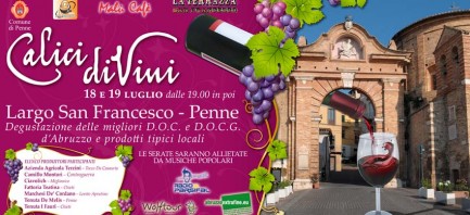 Il 18 e 19 luglio a Penne, a partire dalle ore 19.00 in Largo San Francesco, si terrà l'evento enogastronomico "Calici Di Vini". Allietati dalle musiche popolari abruzzesi, si potranno degustare i migliori vini DOC e DOCG delle nostre terre e assaporare ottimi prodotti locali.