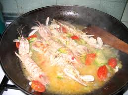 Preparazione: Nettate le pannocchie ancora vive,privatele dalla parte della schiena del canale escretorio. Salatele e fatele rosolare con olio ed aglio in un tegame da fuoco (vulcanizzato) per pochi minuti. Quando saranno belle bionde,aggiungete il vino,fate evaporare,e poi i pomodorini lavati e spaccati ed il prezzemolo;fate cuocere per altri 5’.