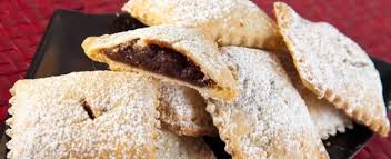 Fase finale: stendere la pasta molto sottile, mettere il ripieno e formare dei piccoli ravioli, friggere in abbondante olio caldo, girare subito senza far dorare; scolare bene e porre su un foglio assorbente. Servire spolverando con zucchero a velo o semolato.