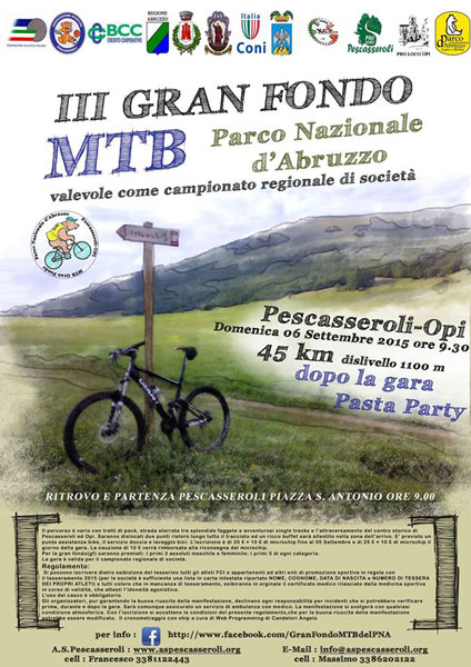 Nella splendida cornice di Pescasseroli (L’Aquila) e del Parco Nazionale d’Abruzzo, si ripete domenica 6 settembre l'appuntamento con la Granfondo Mtb del Parco Nazionale d’Abruzzo, a cura dell’AS Pescasseroli, sotto l’egida della Federciclismo Abruzzo e prova interregionale del circuito XCP Cup Point to Point.