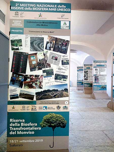 La delegazione altomolisana ha esposto un cartellone con la sintesi delle esperienze vissute ed organizzate nella Riserva della Biosfera del Molise negli ultimi mesi al fine di divulgare il significato del Programma Man and Biosphere e il suo valore per la tutela della biodiversità, condividere attività di valorizzazione e riscoperta della natura e dei borghi del territorio sia a fini educativi che turistici, unire un’area e gli abitanti dei 7 comuni per mettere in rete le diverse iniziative, una condivisione suggellata in estate con la presentazione di un programma unico di eventi.