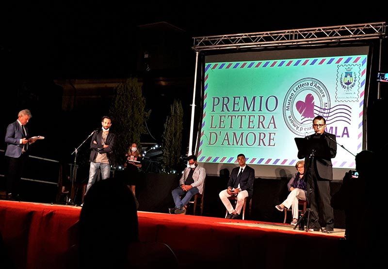 Il tutto, nell’atmosfera magica che ha incantato i presenti, fino all’ultimo col fiato sospeso nel più assoluto silenzio ad ascoltare le letture, da parte degli attori Antonella De Collibus ed Alessio Tessitore, dei testi vincitori, che hanno commosso fino alle lacrime le stesse autrici delle composizioni. Stevka Smitran ha donato al Museo della Lettera d’Amore l’originale del suo testo vincente, composto in lingua serbocroata nel 1969, quando era ancora giovanissima. Laura D’Angelo, a partire dai nostri giorni difficili, declama nella sua lettera il valore assoluto di ciò che dura e resiste oltre ogni limite, il sentimento unico che il vento si incarica di trasportare fino all’amato. Renata Di Sano tratta con delicatezza il tema di un’ossessione d’amore, che si fa presenza e permanenza, ad onta del suicidio, che la madre ha messo in atto. La scrittrice si cala, con rara eleganza espressiva, nella figlia, che scrive: non annebbiata dal rancore per lo strappo, parla in modo lucido, svela la psicologia della madre, la mostra nelle sue debolezze e contraddizioni, per chiederle con vigore di andare via “per amore”, liberarla dalla sua presenza in absentia e consentirle di rinascere.