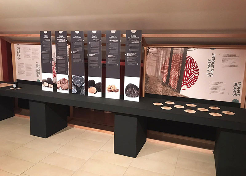 Entrando nel Museo si viene catapultati in un’atmosfera coinvolgente. C’è una sezione immersiva che guida i visitatori nei segreti del tartufaio, con il rituale della cerca che comincia di notte, diverse installazioni, proiezioni, il racconto della nascita del tartufo nella terra, le tradizioni folkloristiche che si fondono con l’enogastronomia. Un percorso multisensoriale animato da odori, dalla possibilità di toccare, osservare e conoscere come assaporare il re dei boschi, anche attraverso la condivisione di ricette da portare a casa.