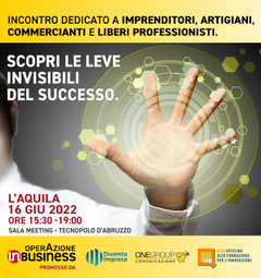 Un incontro formativo gratuito per imprenditori, artigiani, commercianti e liberi professionisti per scoprire le leve invisibili del successo. Operazione inBusiness è il progetto di rilancio delle attività promosso da Diventa Impresa, One Group e Q110 Officina di Alta Formazione.