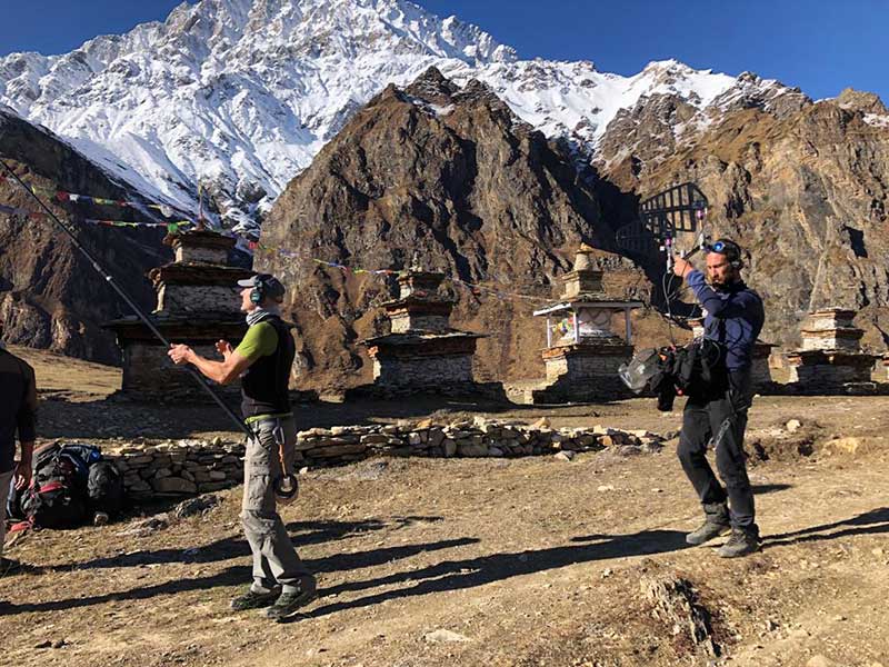 Sì, è vero. Sono un appassionato alpinista; ho scalato vette nei miei Appennini, nelle Alpi, nelle Dolomiti e in Nepal (Himalaya) e Pakistan (Karakorum). Adoro la montagna, vi sono nato e appena posso vi ritorno. Questa passione ha senz'altro influito ed è confluita nel lavoro svolto per “Le otto montagne”. Qui infatti i personaggi principali sono tre: Pietro, Bruno e la montagna e la sfida era proprio quella di far emergere il terzo. Per far questo c'è stata una scelta registica decisiva che si è rivelata difficile ma vincente: non costruire gli ambienti ma recarsi negli ambienti e girare nelle reali situazioni montane. Ad esempio la scena della cena con la polenta nella barma, è stata girata proprio nella barma a 2400 m. d'altezza mentre nevicava realmente; non è stato approntato un set in un ambiente estraneo alla montagna, ma si è data voce alla montagna stessa. In tal modo nulla è stato ricostruito ma tutto è una realtà documentaria nei tre diversi luoghi dove si svolge la storia: Torino, la Val d'Aosta, il Nepal. Ovviamente ciò ha comportato problemi tecnici notevoli. Qui diventa fondamentale quel rapporto continuo con la regia cominciato ben prima dell'inizio delle riprese con contatti, anche via skype, dove abbiamo ragionato e definito il tipo di costruzione sonora necessario per il film.