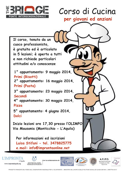 Corso di cucina per anziani e giovani: info Luisa Stifani 347.8825775