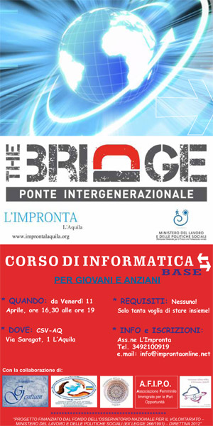 Entra nel vivo il progetto “The Bridge- ponte intergenerazionale”, promosso dall'Associazione L'Impronta e finanziato dal Ministero delle Politiche Sociale del Lavoro, Direttiva 2012.