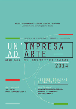 Il Museo Regionale dell’Emigrazione Pietro Conti – Centro di Ricerca sull’Emigrazione Italiana con sede a Gualdo Tadino (Perugia), presenta la quarta edizione del premio all’eccellenza “Un’Impresa ad arte. Gran Galà dell’Imprenditoria Italiana 2014”, con la collaborazione del Sole 24Ore – Formazione ed Eventi ed il Patrocinio del Comune di Gualdo Tadino e del Consiglio Regionale dell’Umbria. Il progetto rende omaggio alle imprese che hanno raggiunto alti livelli d’eccellenza contribuendo alla diffusione del made in Italy nel mondo e dimostrando sensibilità e attenzione ai temi della valorizzazione e della promozione del patrimonio culturale italiano. L’arte del fare impresa in un momento critico, la professionalità e la serietà di profili aziendali che stanno riuscendo a crescere, a innovare, a fare ricerca in una congiuntura nazionale e internazionale molto complessa, l’attenzione per il sociale e per il patrimonio culturale: questi i parametri secondo i quali saranno giudicate e quindi premiate le migliori aziende italiane protagoniste del Gran Galà dell’Imprenditoria che si svolgerà a Gualdo Tadino sabato 20 settembre 2014 nella cornice della Rocca Flea. Un riconoscimento ambito per le piccole, medie e grandi aziende evidenziatesi, nei rispettivi settori di intervento, per gli elevati standard qualitativi raggiunti. “Il sapere si unisce al saper fare, la cultura incontra l’impresa, con l’obiettivo d’incentivare un dialogo efficace tra due ambiti apparentemente distanti, ma in realtà speculari e complementari”, spiega Catia Monacelli, Direttore del Museo dell’Emigrazione ed ideatrice del format. “L’iniziativa nasce sotto l’egida del Museo dell’Emigrazione, il cui slogan recita Essere italiani è una storia; ed il nostro tessuto imprenditoriale ne è parte integrante”. Il progetto si avvale della collaborazione del gruppo Sole 24Ore Formazione ed Eventi e della consulenza del noto manager Raffaele Forlini. Le aziende che desiderano candidarsi possono visionare il regolamento sul sito emigrazione.it ed iscriversi compilando la domanda di ammissione entro il 31 agosto 2014. Per informazioni sull’iniziativa è possibile contattare lo 075-9142445 o scrivere a info@emigrazione.it.