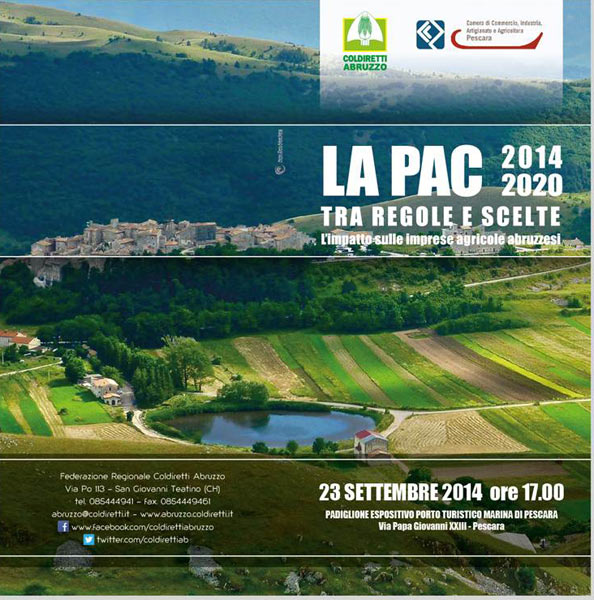 Agricoltore attivo, convergenza dei pagamenti diretti e processo di regionalizzazione, greening, giovani agricoltori, semplificazione, integrazione dei fondi strutturali e fabbisogno di innovazione, qualità e sostenibilità. Sono solo alcune delle "parole chiave" della nuova Politica agricola comunitaria, alla quale dovranno fare riferimento anche le imprese agricole abruzzesi tra regole nuove e importanti scelte da compiere. Per capire come sta cambiando l’agricoltura europea, italiana ed abruzzese, martedì 23 settembre p.v. alle ore 17.00, nel Padiglione Espositivo del Porto turistico Marina di Pescara, si terrà il convegno intitolato “LA PAC 2014 – 2020 TRA REGOLE E SCELTE: L’impatto sulle imprese agricole abruzzesi”, promosso da Coldiretti Abruzzo.