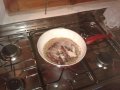 Versate metà dell'olio in una padella, aggiungete la salsiccia a piccoli pezzi, un bicchiere di acqua e fate cuocere, a fuoco lento.